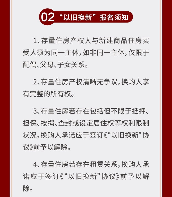 維揚(yáng)地產(chǎn)積極響應(yīng)政府新推行的“以舊換新”政策,踐行“惠民”理念,打造高品質(zhì)住宅,滿足揚(yáng)州人民改善型住房需求。此次維揚(yáng)發(fā)投“以舊換新”工作以其自主開發(fā)的維投·山河頌項目為試點(diǎn),由國企背書、置換范圍廣、全流程專業(yè)服務(wù)。首批換購新建商品住房限額50套,換購人可通過登錄“維揚(yáng)發(fā)投商品住房‘以舊換新’線上報名系統(tǒng)”報名,具體要求詳見公告。