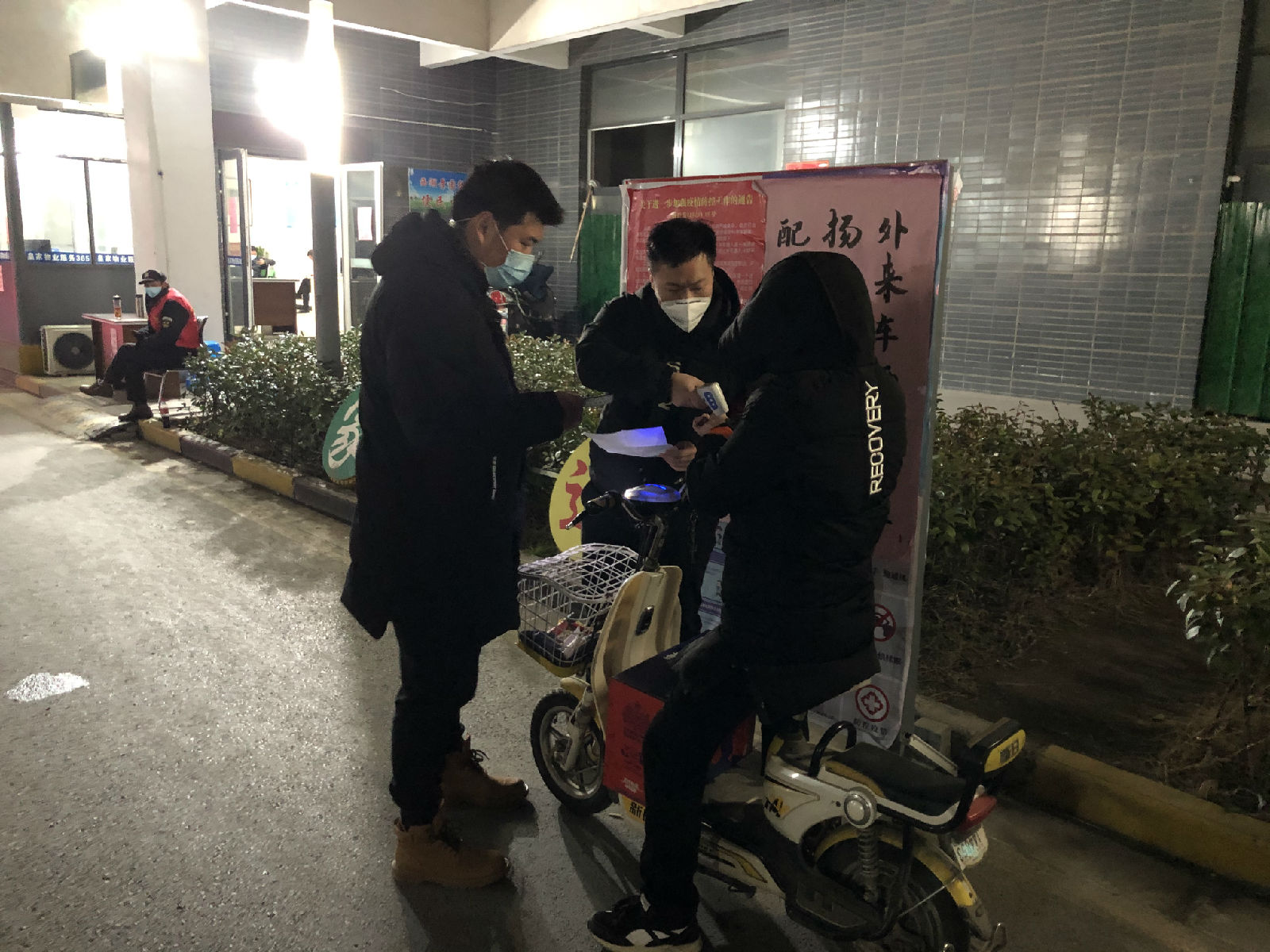 (對(duì)出入小區(qū)的居民進(jìn)行體溫監(jiān)測(cè)和信息核實(shí))