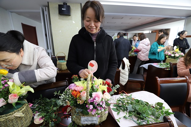為了豐富公司的企業(yè)文化生活,激發(fā)女職工的工作熱情,充分發(fā)揮半邊天的作用,3月5日下午,公司聯(lián)合西區(qū)新城女職工開展學習插花活動。西區(qū)新城工會主席濮正權(quán)主持了活動。